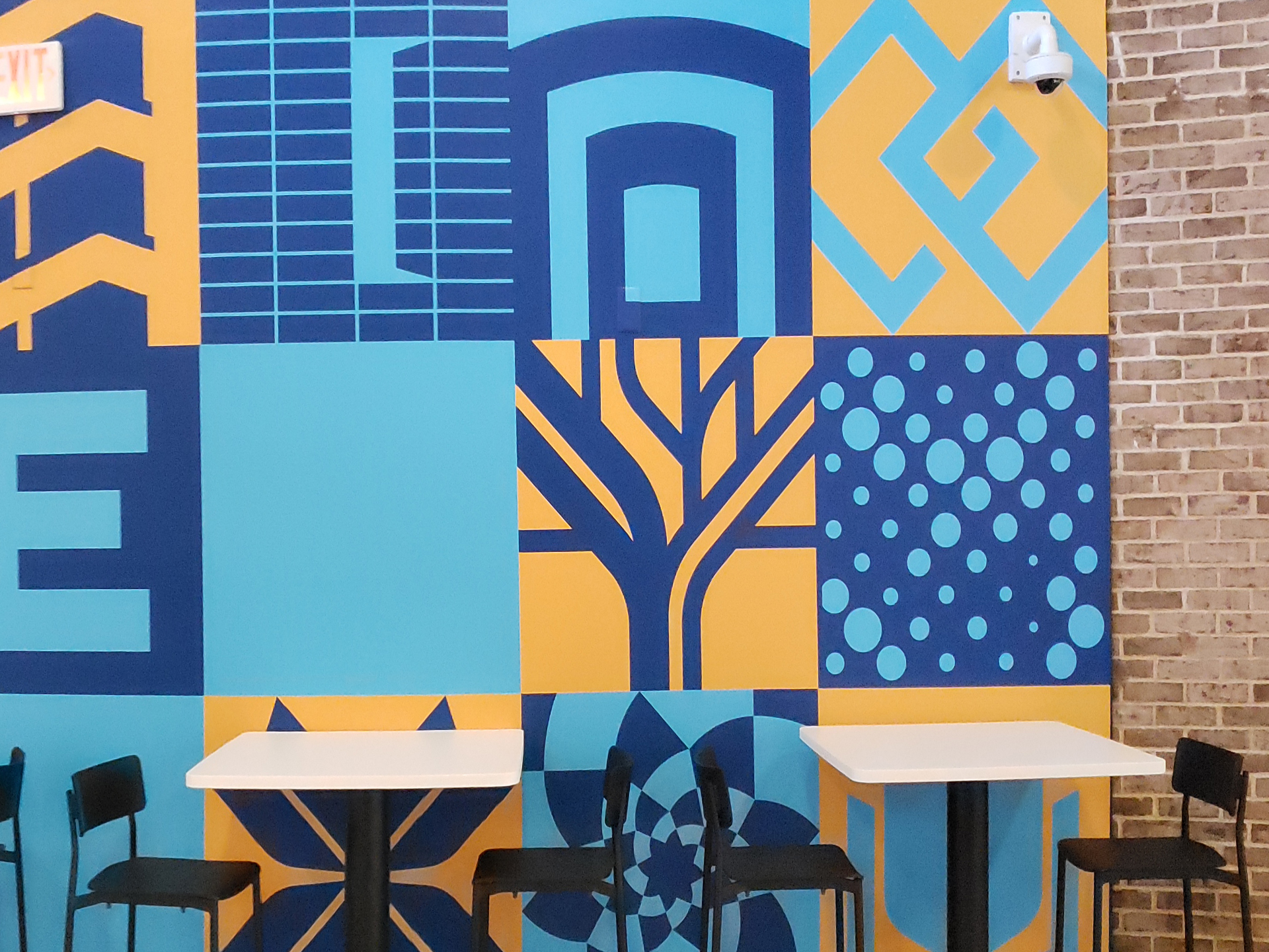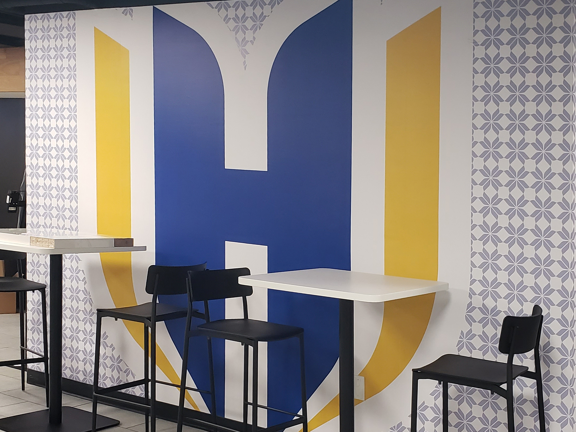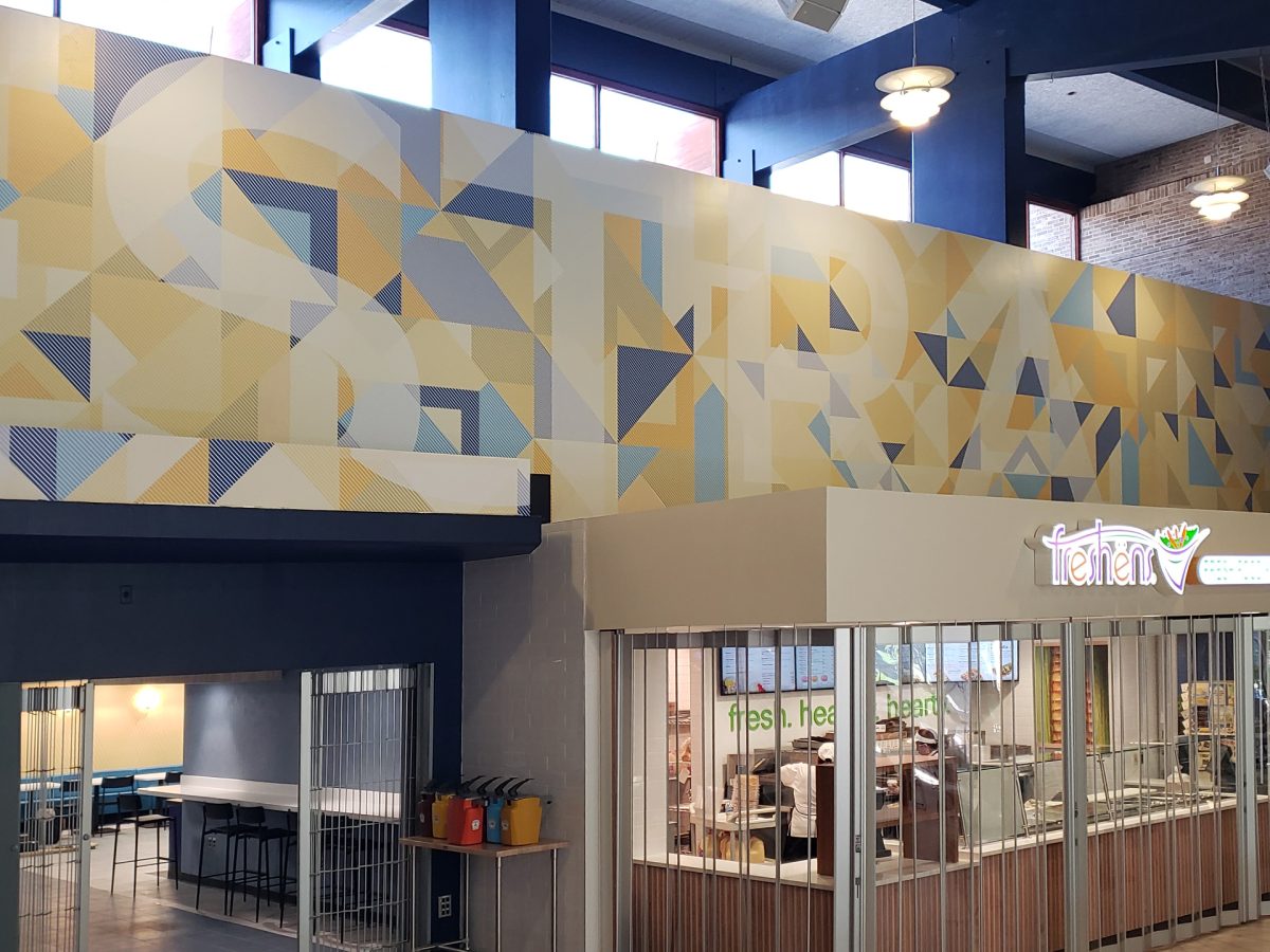 Integrated environmental graphics and digital menu systems developed to enhance the dining experience, featuring precision-fabricated raised acrylic elements and coordinated color applications aligned with the university’s architectural program.